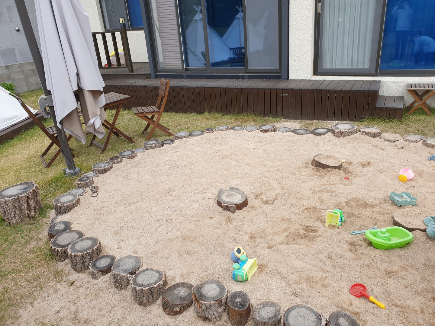 애기가 정말 좋아했던 모래사장도 있어요~장난감들도 모래밭에 같이 있었구요.